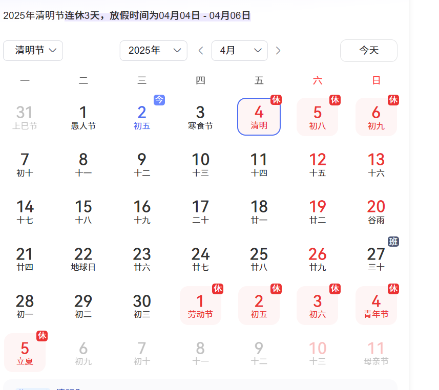 一、放假時間2025年清明節假期為4月4日(星期五)至4月6日(星期天),共計3天。